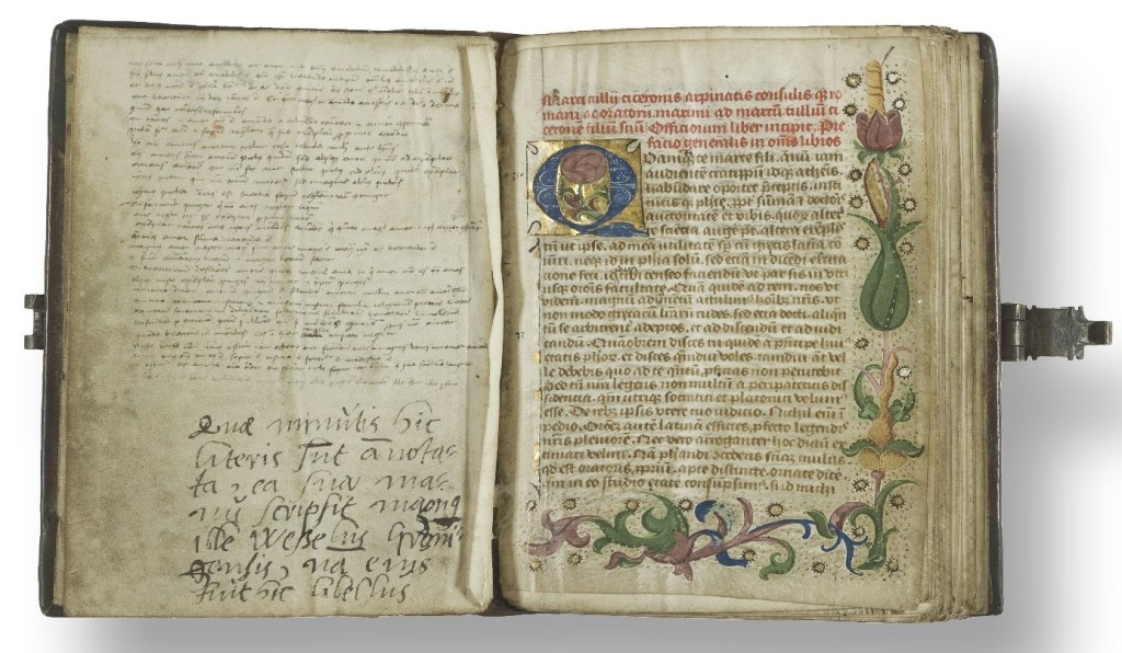 15e-eeuws handschrift no. 158, een handgeschreven exemplaar van Cicero’s “De officiis” met aantekeningen van de Groningers Wessel Gansfort en Regnerus Praedinius.