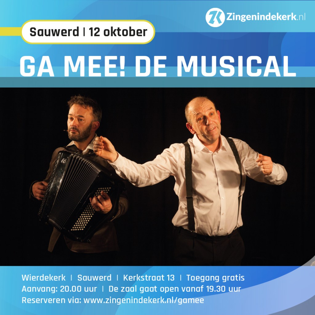 Op donderdagavond 12 oktober komen verhalenverteller Kees Posthumus en accordeonist Juul Beerda naar de Wierdekerk voor een echte musical!