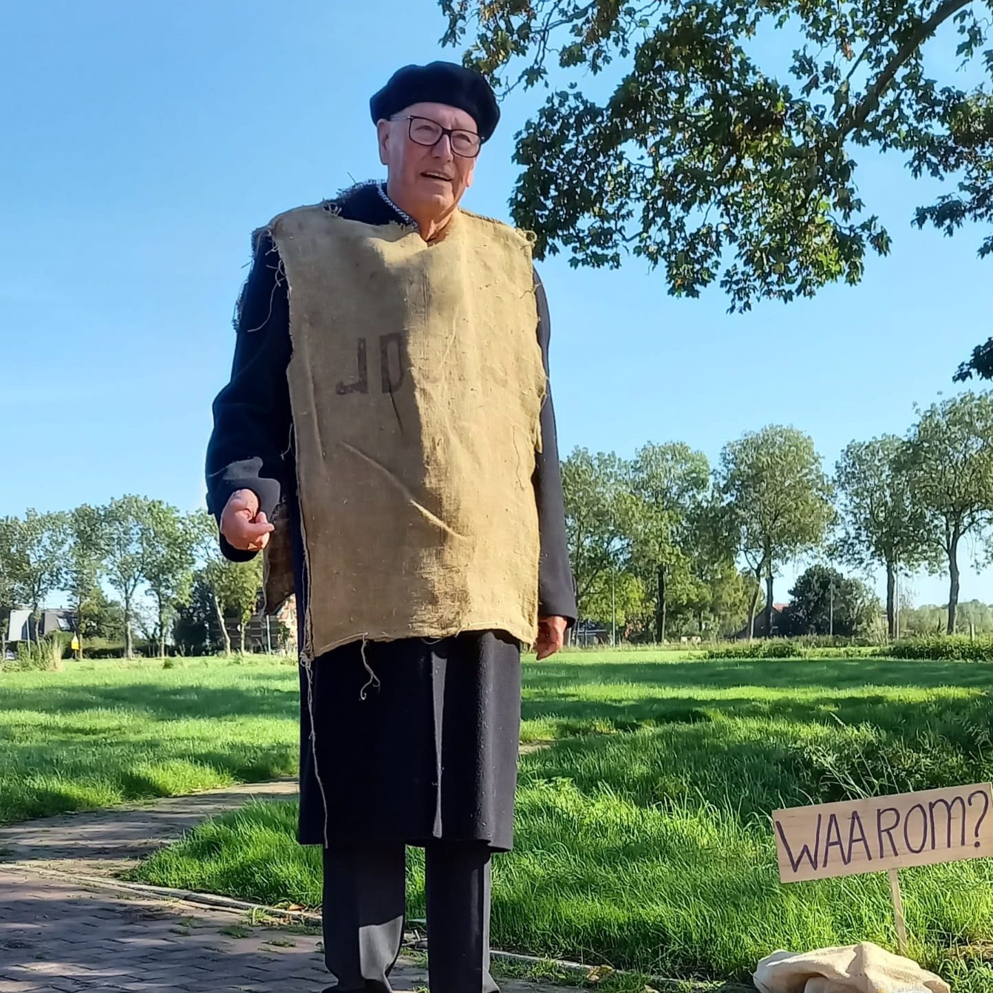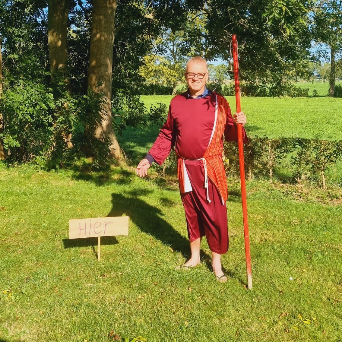 Daarna was er alle tijd voor ontmoeting bij koffie en zelfgebakken lekkers, en in groepjes gingen we op mini-pelgrimstocht. We kwamen langs Bijbelse figuren die allemaal iets te zeggen en te vragen hadden.