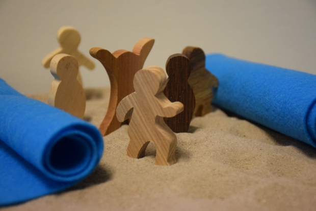 - Eerst is er een verhaal. Dit verhaal wordt niet alleen verteld, maar wordt ook met speciaal materiaal uitgebeeld.